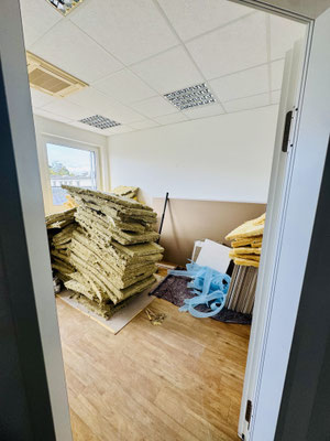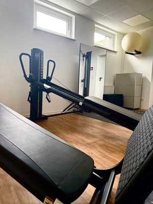 Zusätzlich können wir auf eine großzügige Trainingsfläche zurückgreifen, auf der der aktive Teil der Behandlung durchgeführt werden kann.